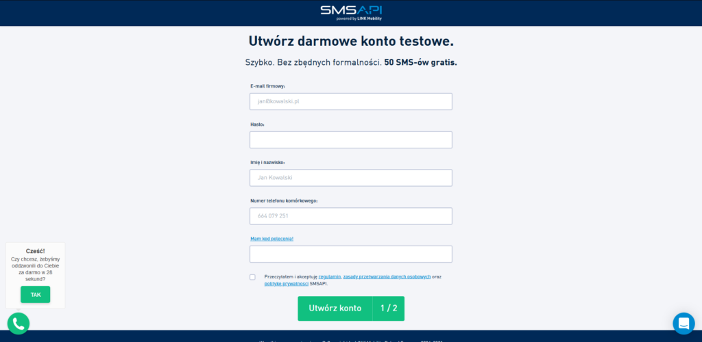 Na stronie smsapi.pl należy założyć konto.