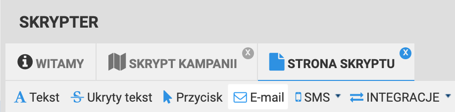 W drugim kroku, jeżeli wiadomości mają być wysyłane przez Konsultanta w czasie rozmowy należy skonfigurować przycisk wysyłki e-mail.